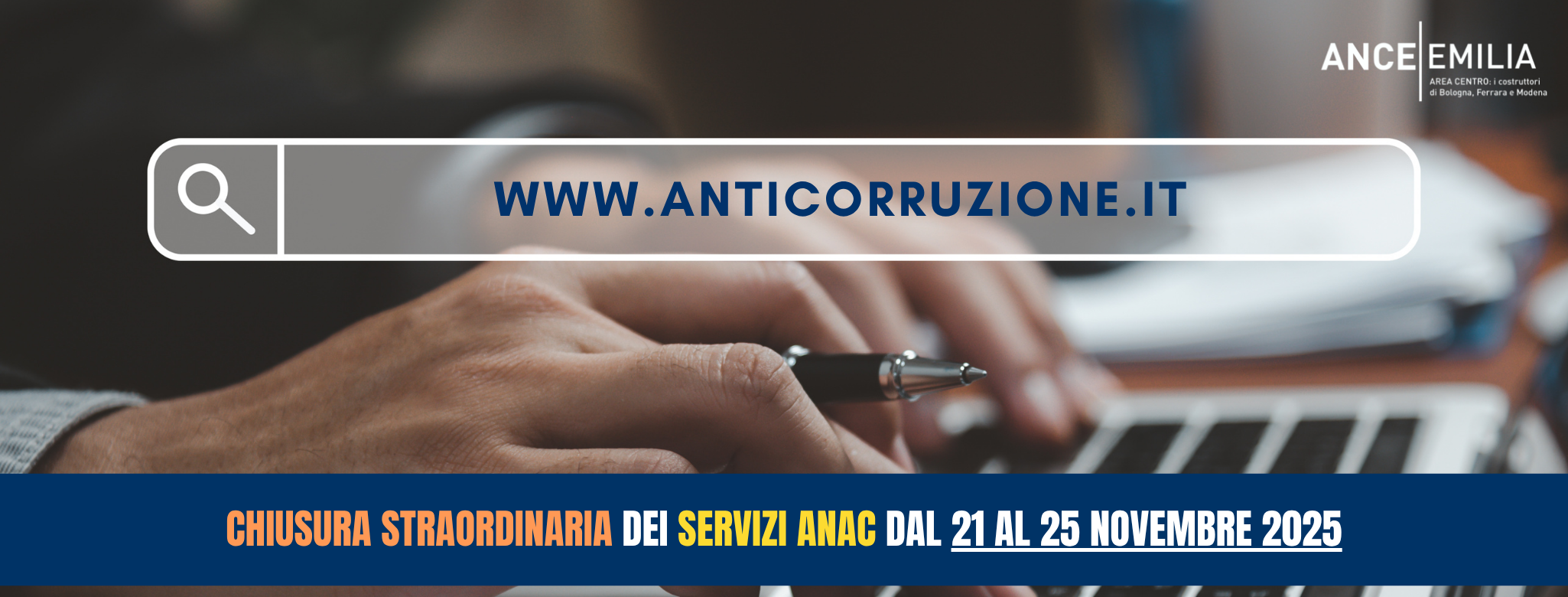 Informiamo i nostri Associati, al fine di organizzare le proprie attivitĂ , che dalle ore 8.00 di VenerdĂŹ 21 novembre 2025 alle ore 8.00 di MartedĂŹ 25 novembre 2025, la maggior parte dei servizi e delle piattaforme erogati da ANAC non saranno disponibili, per la migrazione dei servizi afferenti allâecosistema dei contratti pubblici sul Cloud...