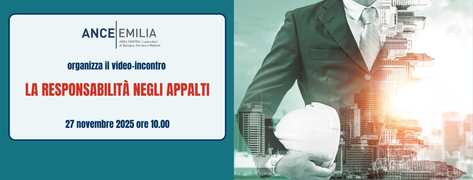 Siamo lieti di invitarvi allâincontro, in modalitĂ telematica, dal titolo âLa ResponsabilitĂ negli appaltiâ che si terrĂ GiovedĂŹ 27 novembre 2025, alle ore 10.00. L’incontro, di taglio pratico, Ăš rivolto alle Imprese e ai Professionisti del settore, e si pone l’obiettivo di illustrare fin dove arriva la responsabilitĂ dellâimpresa negli...