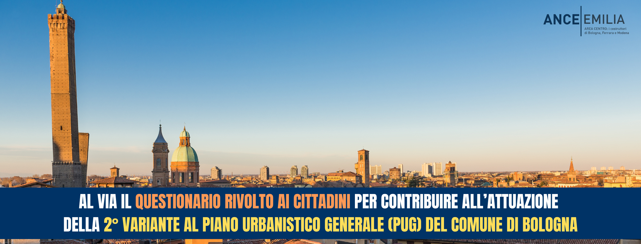 In occasione della presentazione pubblica della Seconda Variante al Piano Urbanistico Generale, che si è svolta sabato 21 febbraio in Sala Borsa, il Comune di Bologna ha lanciato un questionario online, rivolto ai cittadini, che ha l’obiettivo di raccogliere proposte su temi quali la rigenerazione urbana, l’abitare, la sostenibilità, i servizi...